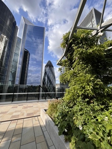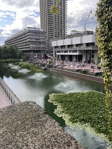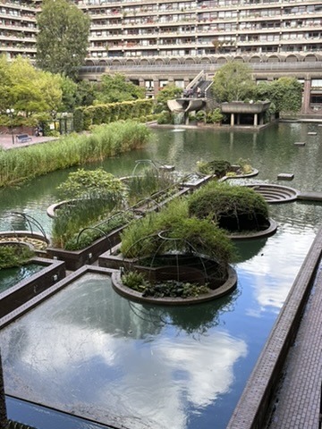 Weil der Borough Market bei uns so einen guten Eindruck hinterlassen hatte, wollte ich mir auch unbedingt den Leadenhall Market ansehen. Leider hatte ich hier wohl eine falsche Vorstellung. Der Leadenhall Market ist kein gewöhnlicher Markt mit Verkaufsständen, sondern lediglich ein überdachtes Gebäude, in dem diverse Lokale ansässig sind. Etwas enttäuscht zogen wir weiter. Nächste Station Barbican Watergarden. Wie schon so oft hatten wir das Talent von der falschen Seite zu kommen. Wir sind über etliche Stufen, Treppenhäuser und durch Durchgänge gegangen, bis wir endlich am Ziel waren. Natürlich wäre es auch einfacher gegangen. In Mitten von einem Wohnkomplex wurde hier ein wunderschönes Wassergarten angelegt. Wer länger bleiben möchte kann sich auch mit Getränken versorgen. Es gibt auch eine kleine Spielecke für Kinder. Eine kleine Oase mitten in der Stadt.