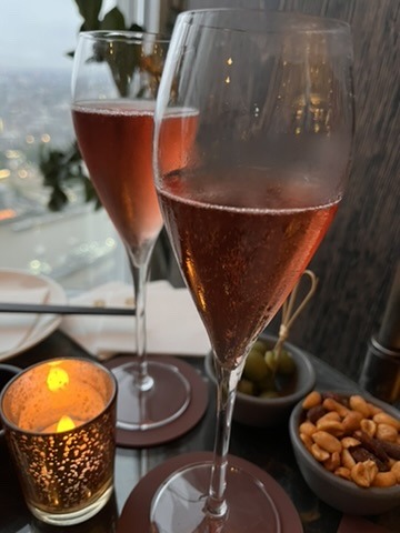 Für den Abend hatten wir einen Tisch in der Gong Bar in The Shard reserviert. ich wollte mir unbedingt London bei Nacht anschauen, daher haben wir für 20:30 Uhr reserviert. Der Sonnenuntergang sollte laut App um 21:00 Uhr sein, daher erschien mir diese Uhrzeit als optimal. Es gibt zwar keinen Dresscode, aber es ist eine gehobenere Bar. Entsprechend sollte man auch gekleidet sein. Schon der Eingang zum Gebäude und die Lobby sind an Eleganz und Luxus fast nicht zu übertreffen. Es gibt dort einige hochpreisige Bars, Restaurant und Hotels. Einen Tisch am Fenster bekommt man nur mit Glück oder wenn man ein entsprechendes Paket mit Getränken und Essen reserviert. Kein günstiger Spaß. Aber für ein einmaliges Erlebnis war es uns das Wert. Der Tisch war wirklich sehr klein, aber die Aussicht dafür um so beeindruckender.