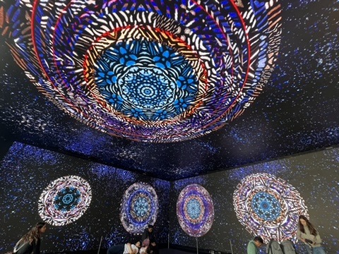 Anschließend liefen wir zur U-Bahnstation Tottenham Court Road. Dort sollte der Butterfly Trail zu finden sein. Das Gebäude liegt direkt neben dem Eingang zur U-Bahn. Wir mussten kurz warte, da der Zutritt erst ab 10:00 Uhr möglich war. Es gibt unterschiedliche Räume, in denen auf übergroßen Leinwänden unterschiedliche Bilder und Videos gezeigt werden. Der Eintritt war auch hier kostenlos. Im größten Raum befand man sich in einem Aquarium umgeben von Pinguinen. Das war ganz nett, aber für uns nicht so interessant. Im mittleren Raum wurden Bilder, die mich an ein Kaleidoskop erinnern eingeblendet. Ich hätte stundenlang zuschauen können.
