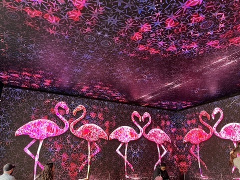 Ein wenig später ging es dann los mit dem eigentlichen Butterfly Trail. Es kommt ein bunter Raum, in dem viele Schmetterlinge fliegen zum Vorschein. Mit dem Handy kann man sich über einen QR-Code auf der Leinwand mit einer Internetseite verbinden. Dort hat man die Möglichkeit interaktiv teilzunehmen und sich z.B. einen Schmetterling auf die Hand zu setzen.