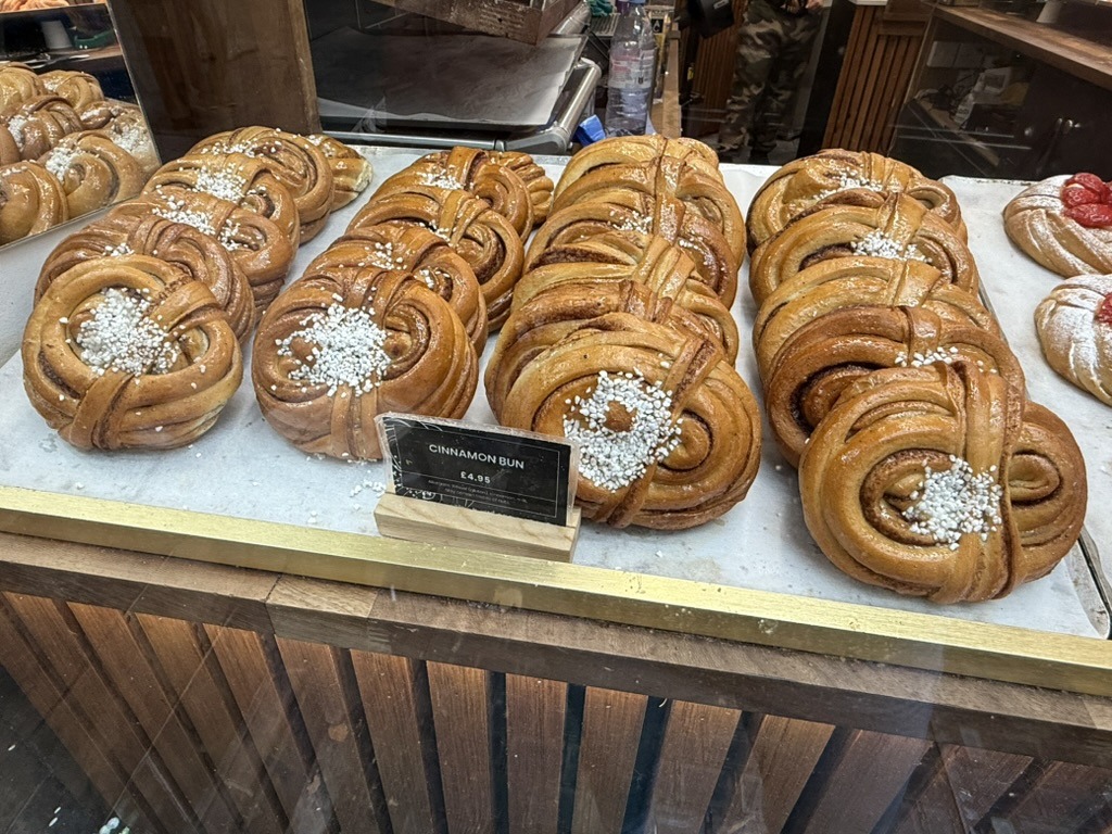 Wer Zimtschnecken mag, ist hier genau richtig. Im Sommer gibt es unterschiedliche Variationen mit frischen Früchten. Im Winter werden die klassischen Buns angeboten. Im Winter gibt es zusätzlich belegte Sandwiches. Alles mega lecker. Wir waren bis jetzt bei fast jedem London Aufenthalt dort. Das kleine und unscheinbare Lokal liegt in der Nähe der U-Bahn Tottenham Court Road. Beim ersten Mal sind wir mindestens zweimal vorbei gelaufen. Unbedingt probieren.