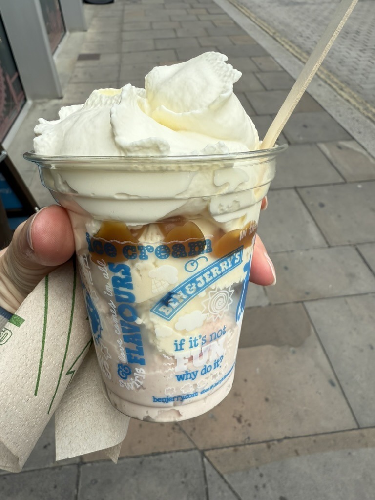 Diesen Laden haben wir zufällig nach unserem Besuch im Tower entdeckt. Ich bin ein riesen Ben&Jerry’s Fan. Daher war es keine Frage, ob wir reingehen. Die Auswahl der Sorten ist relativ überschaubar. Ich habe mich für zwei Sorten mit Salted Caramel Soße und Sahne entschieden. Es war jeden Löffel wert. Für echte Fans ein Muss.
