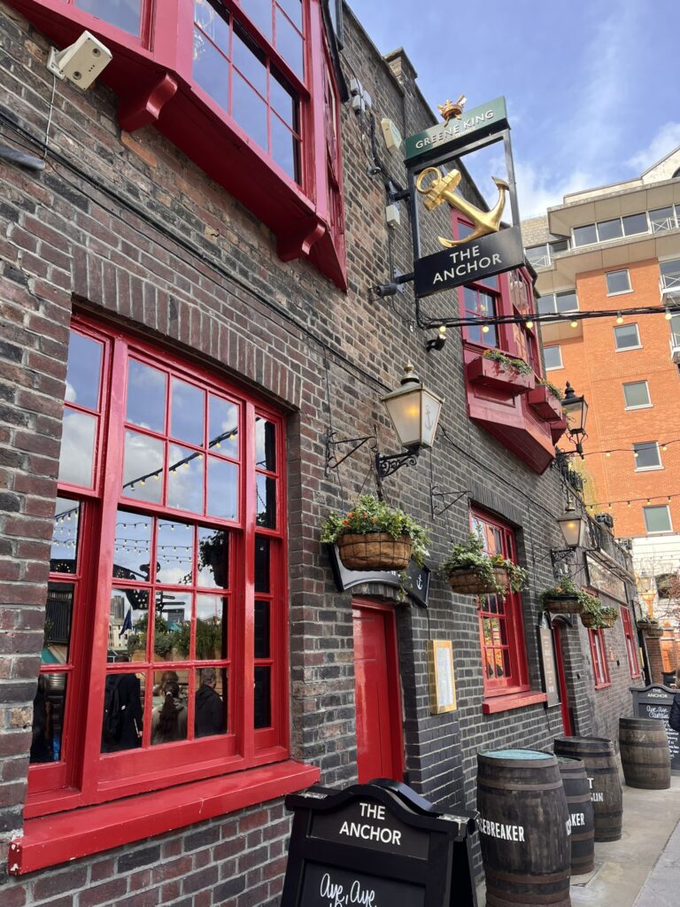 The Anchor war unser erstes Pub. Es liegt direkt an der Themse und man kann bei schönem Wetter im Außenbereich oder auf der Dachterrasse sitzen. Es gibt eine große Auswahl an Bier (Lager und Ale), Cider und alkoholfreien Getränken. Wenn man sich beim Bier nicht sicher ist, darf man auch probieren. Auch die Speisekarte hat einiges zu bieten. Bei den Kids kommen Mac & Chees super an. Wir bestellen immer die Sides (Beilagen), da die kleinen Portionen für Kinder absolut ausreichend sind und preislich total vertretbar. Das Essen schmeckt wirklich gut. Die Bestellung gibt man direkt am Tresen auf und bezahlt auch gleich bei jeder Bestellung. Somit muss man später nicht warten. Das ist sehr praktisch. Wenn man Essen bestellt, sollte man sich zuvor die Tischnummer (kleine Plakette auf dem Tisch) merken. Das Essen wird dann zum Tisch gebracht. Kinder sind prinzipiell in Begleitung von Erwachsenen erlaubt. Ich würde Kinder jedoch nicht in jedes Pub mitnehmen. Letztendlich muss es jeder für sich selbst entscheiden. The Anchor ist jedenfalls für Kinder geeignet.