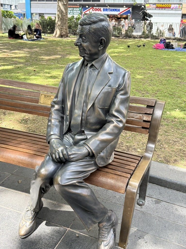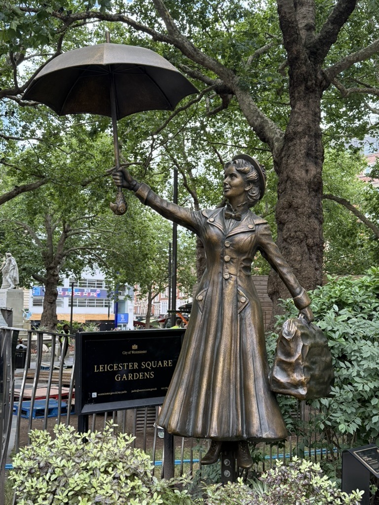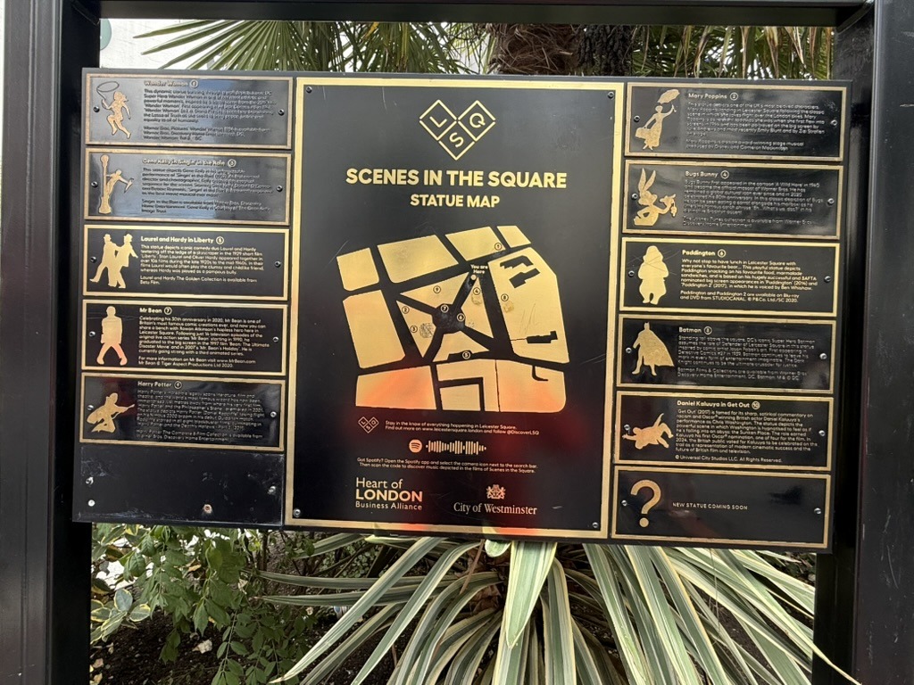 In und um eine kleine Grünfläche am Leicester Square gibt es einige interessante Statuen. Auf einem Schild steht, wo ihr die Figuren findet und um welche es sich handelt. Auch der ein oder andere Blick nach oben ist zu empfehlen, wenn man alle Figuren finden möchte.