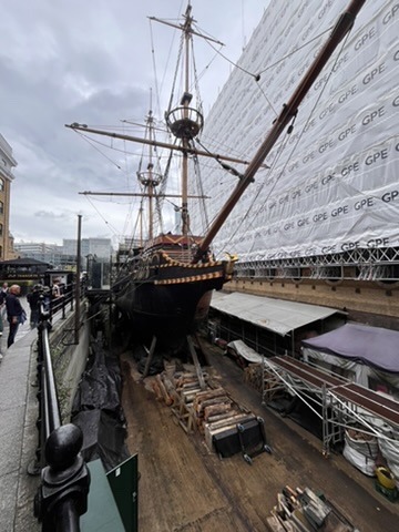 Das wunderschöne Holzschiff ist schön anzuschauen. Für Interessierte kann man es auch besichtigen. Ob sich der Eintritt lohnt kann ich euch nicht sagen. Das Schiff liegt ganz in der Nähe vom Borough Market. Das kann man also im Vorbeigehen mitnehmen.